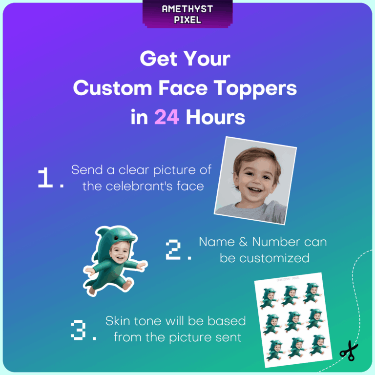 Make a splash at your upcoming celebration with these adorable custom face dolphin cupcake toppers, designed to transform the guest of honor into a friendly marine creature. Perfect for toddlers and young children, these digital printables feature a playful teal-green dolphin costume body with your child’s photo seamlessly integrated into the hood. Whether you are hosting an 'Under the Sea' birthday bash or a summer pool party, these personalized decorations add a unique and humorous touch to your dessert table. The high-resolution design ensures that your photos print clearly on home cardstock, allowing for easy DIY assembly with scissors and toothpicks. This fun, photo-based decor is an excellent way to center the theme around your little swimmer.