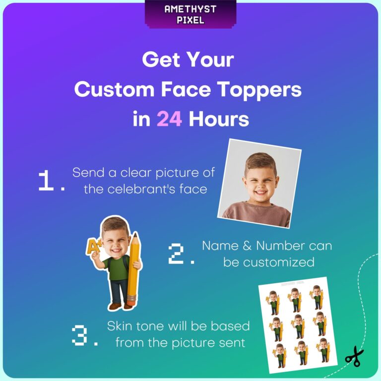 Celebrate your little scholar's academic milestones with these delightful A+ Study Boy cupcake toppers. Designed specifically for preschoolers and kindergarteners, the illustration features a cheerful student wearing a green shirt, blue jeans, and a backpack, while proudly holding a giant yellow pencil and a golden "A+" grade symbol. By uploading your child's photo, you can create a custom face centerpiece that honors their hard work and intelligence. Ideal for graduation ceremonies, back-to-school parties, or marking a fantastic report card, these high-resolution printable decorations add a personal and encouraging touch to your dessert table. The vivid colors and clear school-themed imagery make every treat feel like a reward for a job well done.