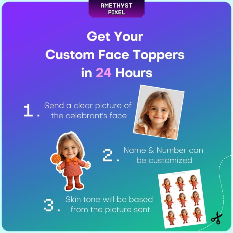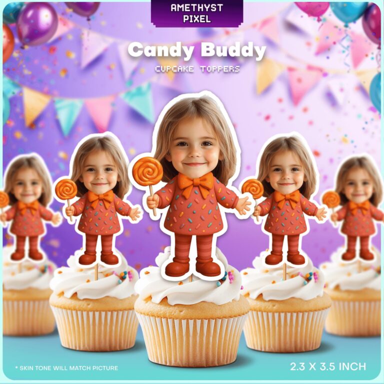 Personalized Face Candy Themed Cupcake Toppers for Sweet Celebrations
