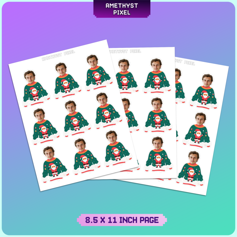 Bring a festive and humorous touch to your holiday dessert table with these custom photo Christmas sweater cupcake toppers. This digital download features a cozy green sweater design adorned with a cheerful Santa Claus and snowy detailing, perfect for capturing the spirit of the season. Ideal for all ages, these decorations are a hit at family gatherings, office parties, and especially "ugly sweater" themed events. The process ensures a seamless look, as the neckline is adjusted to match the skin tone of the photo you provide. Because you receive a high-resolution printable file, you can print as many toppers as your guest list requires right from your home printer.