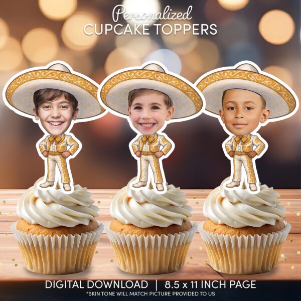 Custom Face Mariachi Cupcake Toppers – Personalized Photo Charro Musician Fiesta Party Decor