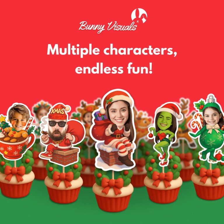 Custom Face Christmas Elf Cupcake Toppers – Personalized Holiday Party Decor