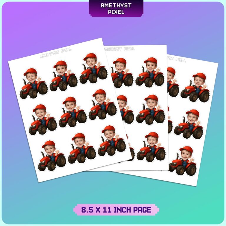 Transform your little one's celebration into a bustling agricultural adventure with these charming custom tractor driver cupcake toppers. Designed expertly for toddlers and engaging preschoolers, this layout features your child wearing a classic red cap and blue denim overalls, enthusiastically waving from the driver's seat of a sturdy red tractor. These personalized decorations are essential for elevating a generic barnyard bash into a memorable event centered around the birthday boy. Ideal for standard-sized bakery treats, the 2.7-inch cutouts provide high-quality visual impact suitable for first birthdays or construction-adjacent themes. By integrating the guest of honor's photo directly into the artwork, you create a cohesive and professional party aesthetic that demonstrates attention to detail and a fun, expert touch.