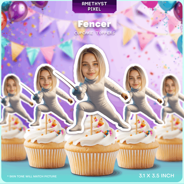 Personalized Fencing Cupcake Toppers – Custom Face Fencer Decoration for Sports Birthdays & Team Events