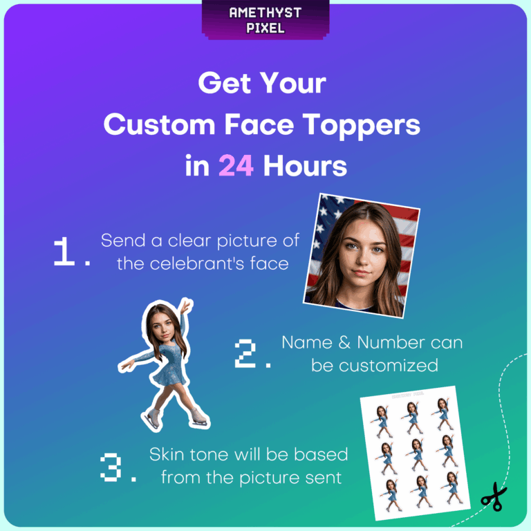 Celebrate your favorite athlete with these custom figure skater cupcake toppers, designed to make the birthday girl the star of the show. This digital download features a sparkly blue skating dress and grey ice skates in a graceful, dynamic pose, perfect for capturing the elegance of the sport. Simply provide a clear photo to have a custom face seamlessly added to the design. Ideal for children and teens who love the rink, these printable decorations transform standard cupcakes into a personalized tribute to their passion. Once you receive your file, print on quality paper for a professional finish that stands out at any ice skating party or winter celebration.