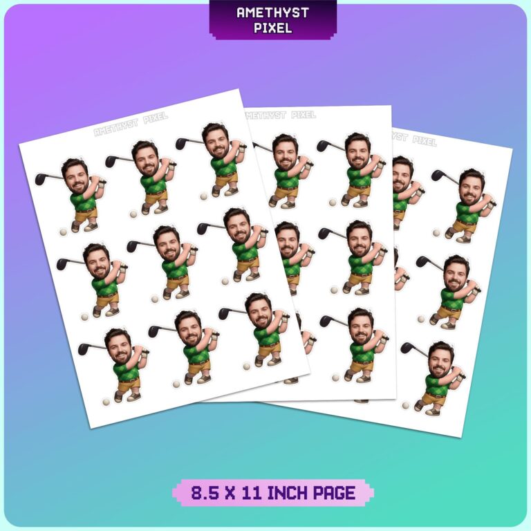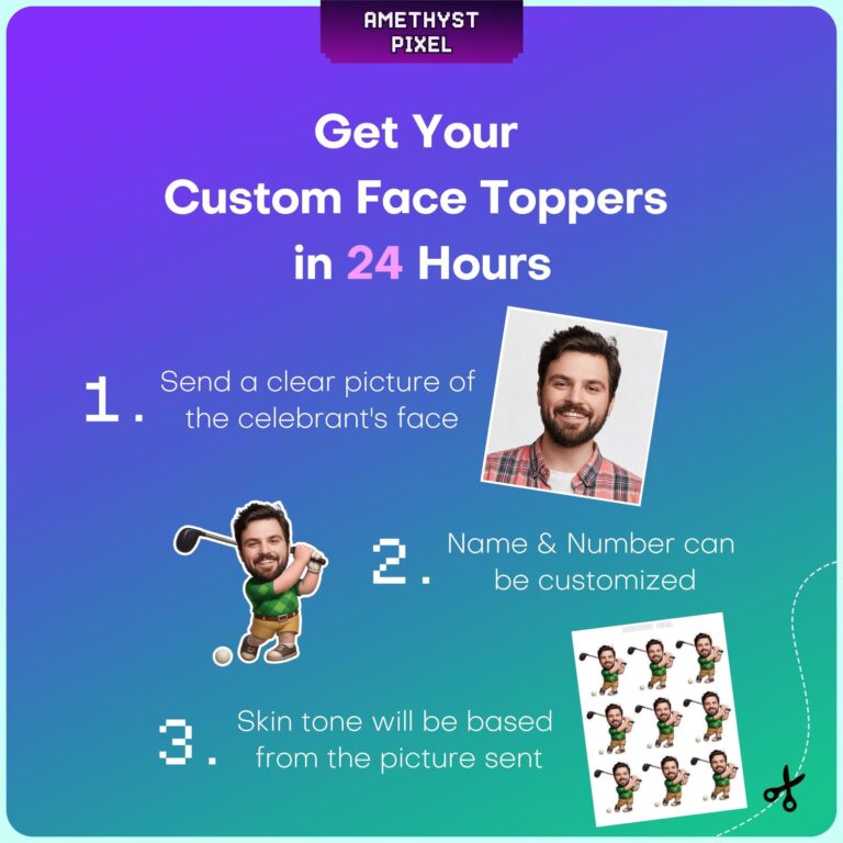 Elevate your next clubhouse celebration with these professionally designed personalized golfer cupcake toppers, specifically tailored for adult men who enjoy time on the green. Each topper features a detailed cartoon body mid-swing, dressed in a classic green argyle polo shirt, tan shorts, and golf cleats, capturing the essence of the sport. We expertly crop and blend your uploaded photo onto the golfer's shoulders, ensuring the skin tone matches the original image for a seamless, high-quality look. Measuring approximately 2.7 by 3.3 inches, these printable decorations are perfect for adding a humorous yet sophisticated touch to dessert tables. Whether you are planning a milestone 50th birthday, a Father's Day brunch, or a 'Par-Tee' themed event, these custom face toppers provide a unique and memorable focal point for your guests.