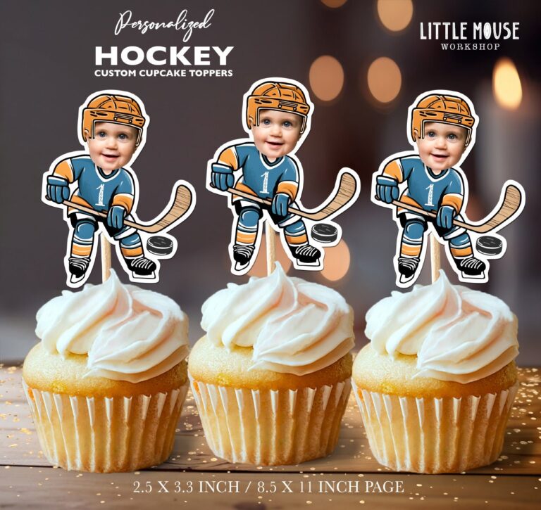 Personalized Hockey Player Custom Face Cupcake Toppers for First Birthday