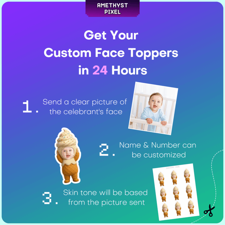 Personalized Ice Cream Cone Cupcake Toppers – Custom Face Printable for Sweet Birthday Parties