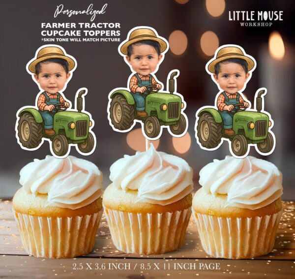 Personalized Little Farmer Red Tractor Theme Custom Face Cupcake Toppers