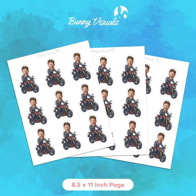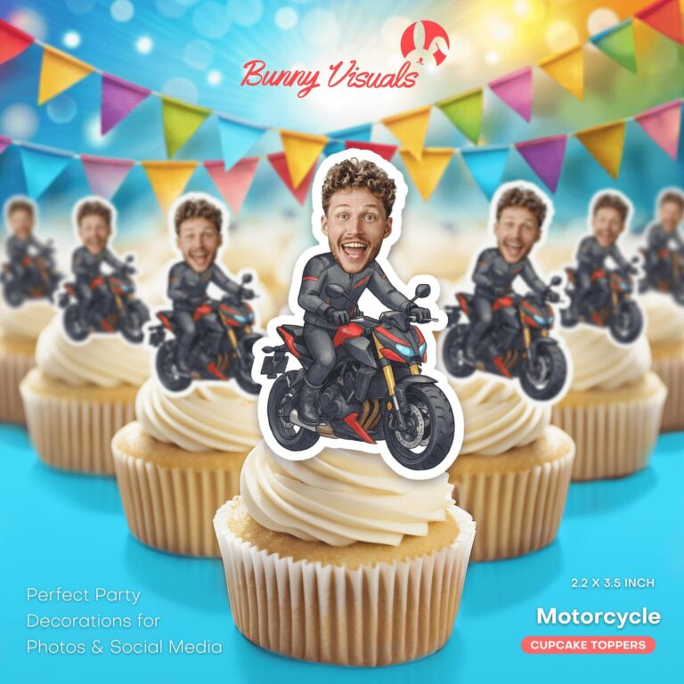 Personalized Motorcycle Rider Cupcake Toppers Featuring Custom Photo Face
