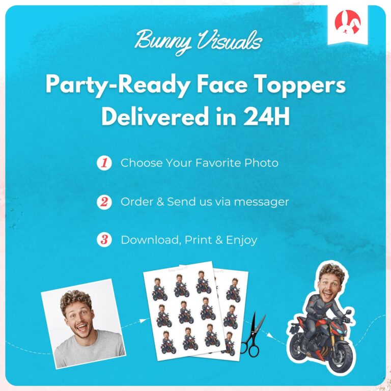 Kick your celebration into high gear with these custom motorcycle cupcake toppers, designed specifically for the bike enthusiast in your life. Each topper connects a high-resolution photo of your chosen subject—whether it’s a husband, dad, or friend—onto a detailed illustration of a rider on a modern red and black sports bike. Wearing full protective riding leathers, this design captures the thrill of the ride, making it an excellent centerpiece for milestone birthdays or motorcycle club gatherings. These party decorations provide a fun, personal touch that highlights the honoree's passion for two wheels while serving as a memorable conversation starter for guests.