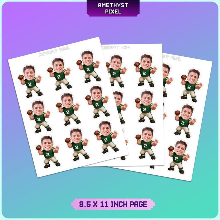 Score a touchdown at your next event with these custom New York football cupcake toppers, perfectly suited for the ultimate fan of the green and white. Featuring a dynamic football player design clad in a deep green jersey with beige pants, these personalized decorations allow you to superimpose the guest of honor's face right into the action. Ideal for adult birthday parties, fantasy football drafts, or energetic game day gatherings, these toppers capture the excitement of the gridiron with a humorous, personal twist. The character is depicted holding a football and stiff-arming the defense, bringing high energy to your dessert table. Whether you are celebrating a husband, father, or friend who lives for Sunday football, these custom face toppers provide a professional and memorable finish to your party treats.