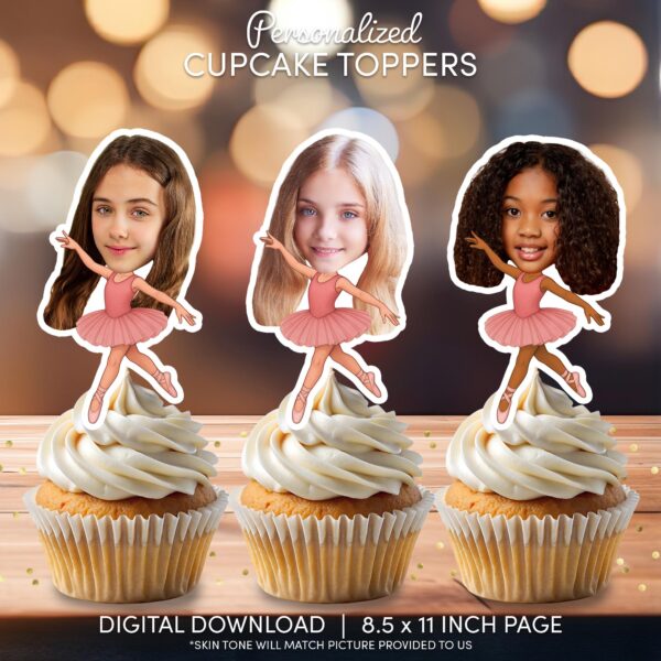 Personalized Photo Pink Ballerina Cupcake Toppers with Custom Face