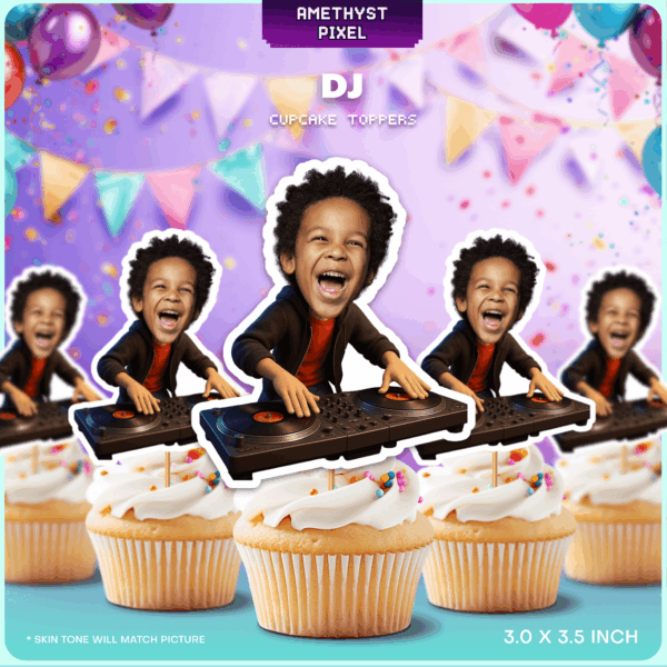 Personalized DJ Cupcake Toppers Custom Face Turntable Music Party Decoration