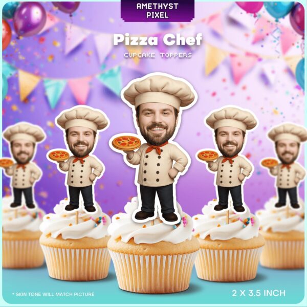 Personalized Pizza Chef Theme Custom Face Cupcake Toppers for Pizzeria Birthday Parties review - Cameron Klepac