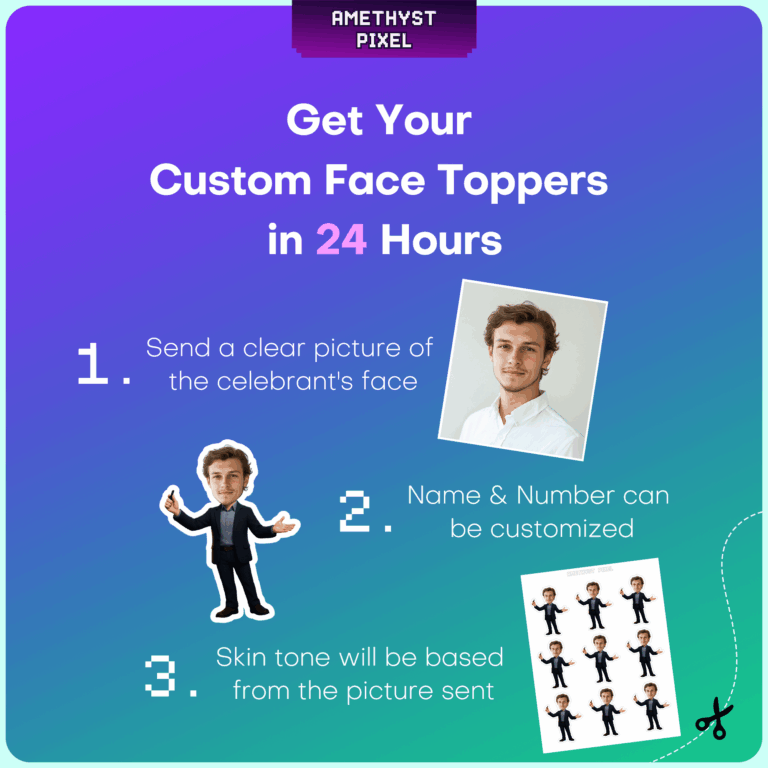 Celebrate your favorite astronomy enthusiast or science educator with these custom Planetarium Presenter cupcake toppers. Designed for science lovers, teachers, and space buffs, this printable design features a professional figure in a sharp suit, gesturing with a laser pointer as if guiding a tour through the stars. Simply provide a high-quality photo of the honoree, and receive a digital file to print at home. These toppers are ideal for adult birthdays, teacher retirements, or even a child's space-themed event where the birthday boy or girl gets to be the 'host.' The design ensures your guest of honor commands the room right from the dessert table, adding a personalized and humorous touch to your galaxy or museum-themed celebration.