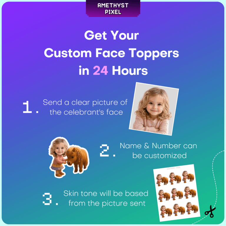 Personalized Pony Cupcake Toppers Printable - Custom Face Horse Birthday Decoration for Girls