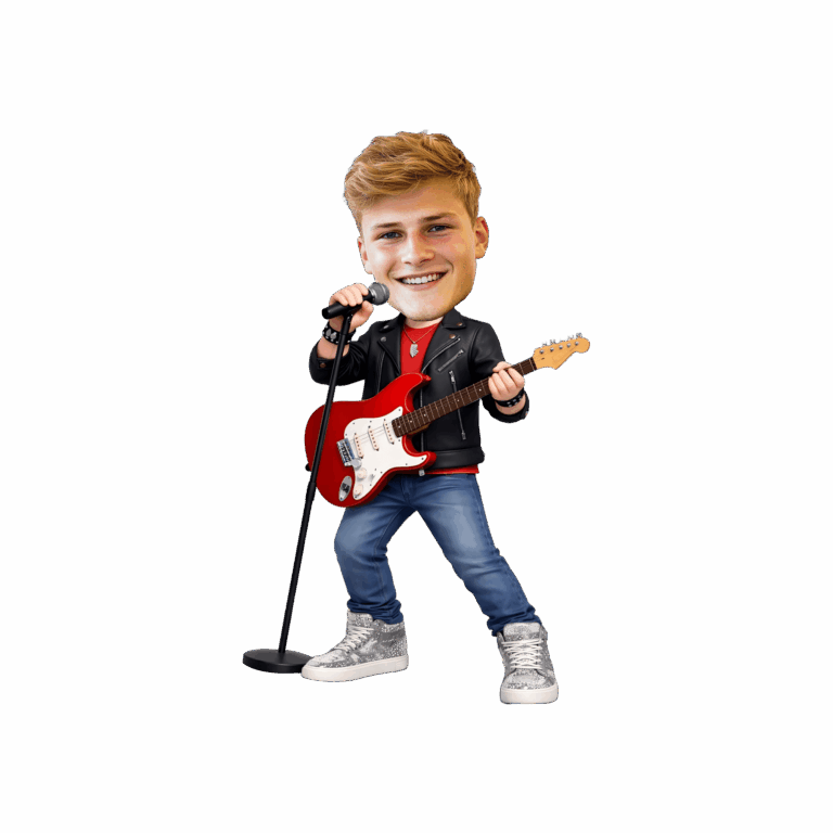 Turn the guest of honor into the ultimate frontman with these custom rock star cupcake toppers. Featuring a cool black leather jacket, red electric guitar, and a standing microphone, this printable design is perfect for adding a high-energy vibe to any music-themed event. Simply upload a clear, front-facing photo, and receive a digital file ready for printing at home. While this dynamic look is excellent for teen birthdays and adult milestone celebrations (like 21st or 40th birthdays), it is also a hit for "Born to Rock" baby showers. For the best results, print these on heavy cardstock to ensure the guitar neck and microphone stand remain sturdy when assembled.