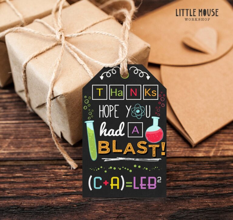 - Attach to favor bags filled with DIY slime kits or putty containers for a tactile science gift.