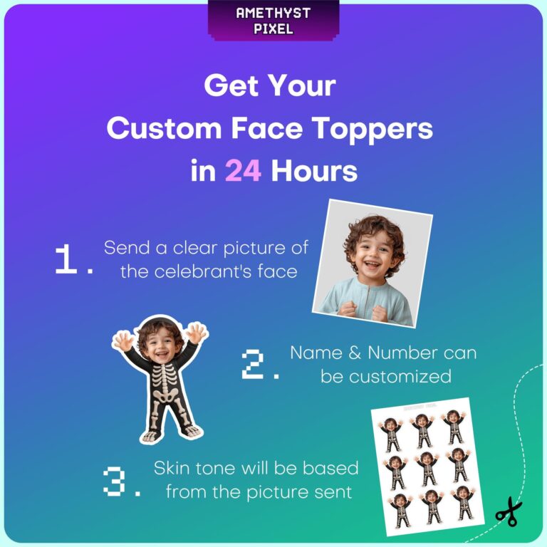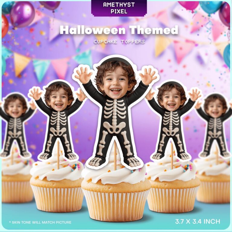 Personalized Skeleton Costume Custom Face Halloween Cupcake Toppers