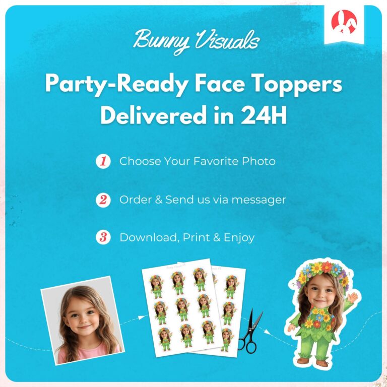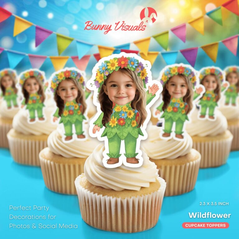 Bring the vibrant beauty of a blooming garden to your little one's celebration with these charming wildflower custom face cupcake toppers. Perfect for spring birthdays or nature-inspired gatherings, each topper features your child’s smiling photo professionally edited onto a delightful character wearing a lush green leafy outfit and a colorful crown of blue, yellow, and orange daisies. These personalized decorations serve as excellent conversation starters at "Wild One" first birthdays or floral-themed tea parties. As a high-quality printable design, this product allows you to easily create professional-looking dessert spikes right from home, ensuring your event feels both personal and expertly styled. Transform ordinary cupcakes into a whimsical meadow scene that captures the free spirit of childhood.