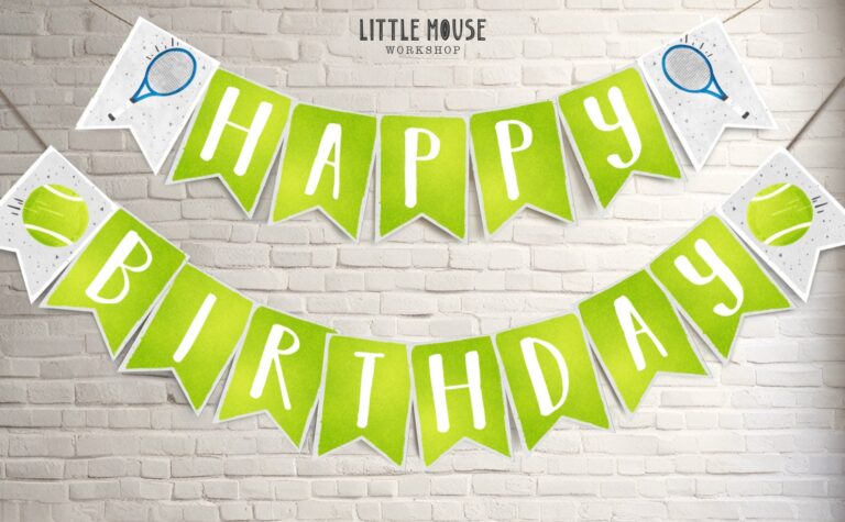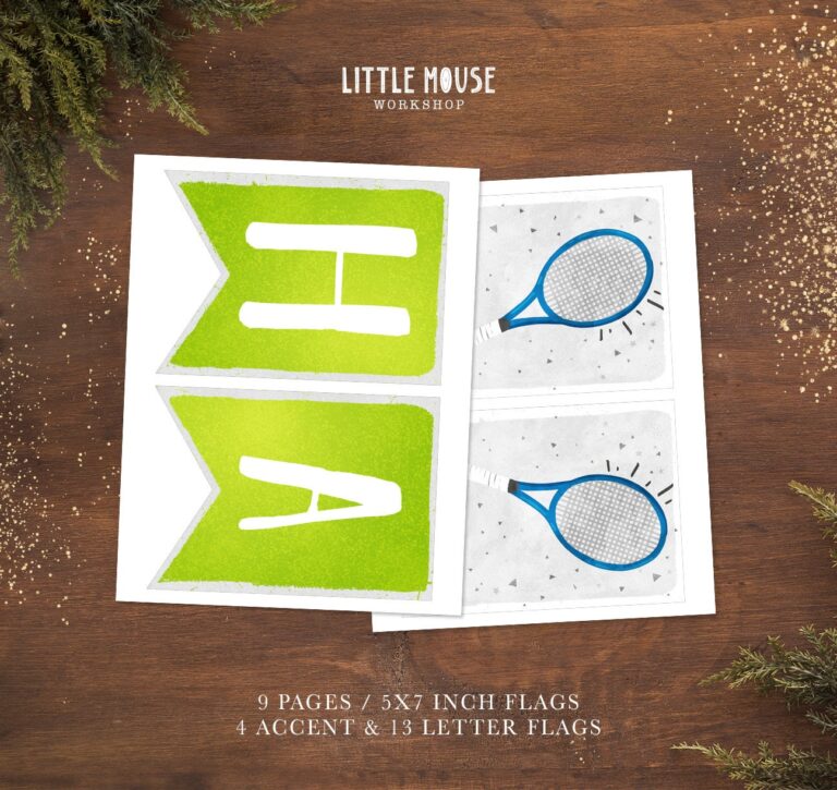 Serve up a winning atmosphere at your next event with this professionally designed printable tennis birthday banner. Perfectly suited for sports enthusiasts ranging from junior players to adult league competitors, this high-resolution digital set features a modern aesthetic that balances vibrant energy with clean design. The collection includes thirteen letter flags to spell "Happy Birthday" alongside four decorative accent flags, featuring dynamic illustrations of flying tennis balls and blue rackets. Each 5x7 inch flag is set against a stylish grey speckled background or a textured neon green field, mimicking the feel of a tennis ball. This instant download offers a reliable and quick solution for party planners needing authoritative, high-quality decor for a clubhouse gathering or home celebration. Simply print on heavy cardstock and string together to transform any room into center court.