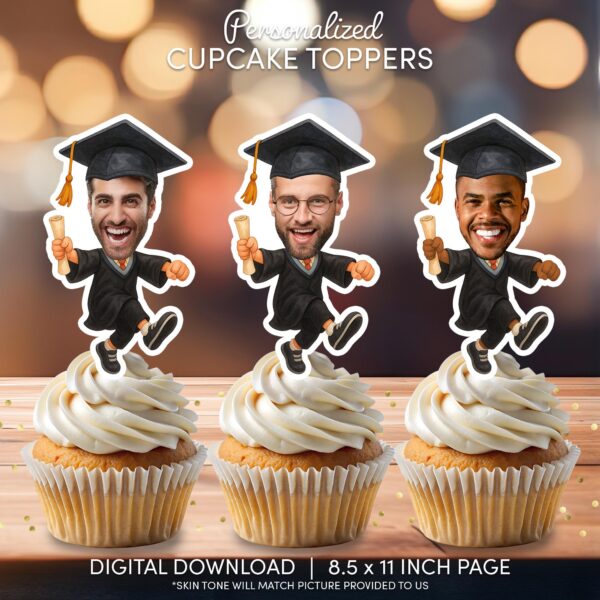 Personalized Graduation Cupcake Toppers – Jumping Grad Custom Photo Printable