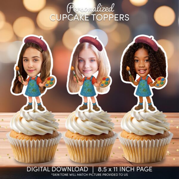 Custom Photo Little Artist Cupcake Toppers – Printable Paint Party Decorations
