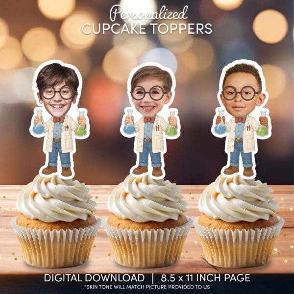 Personalized Scientist Cupcake Toppers - Custom Face Science Party Decorations
