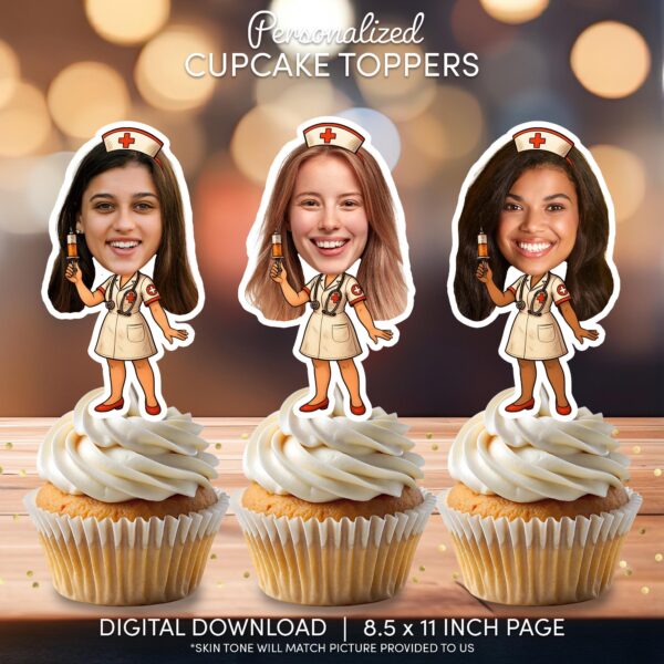 Custom Face Nurse Cupcake Toppers for Graduation and Medical Parties