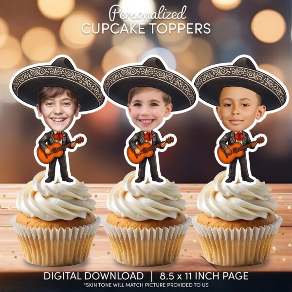 Custom Face Mariachi Cupcake Toppers – Personalized Photo Charro Musician Fiesta Party Decor