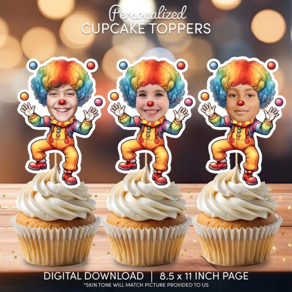 Custom Photo Clown Cupcake Toppers - Printable Circus & Carnival Birthday Party Decor