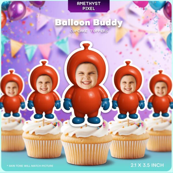 Custom Face Red Balloon Buddy Cupcake Toppers for Kids