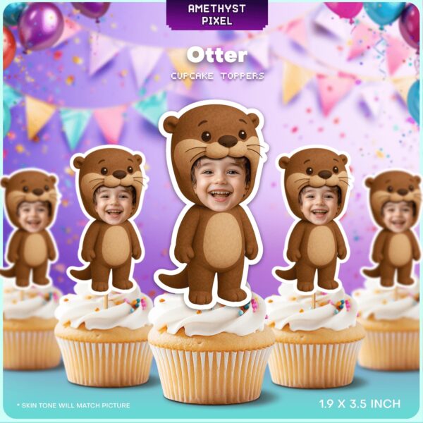 Personalized Otter Cupcake Toppers with Custom Face Photo for Sea Animal Parties