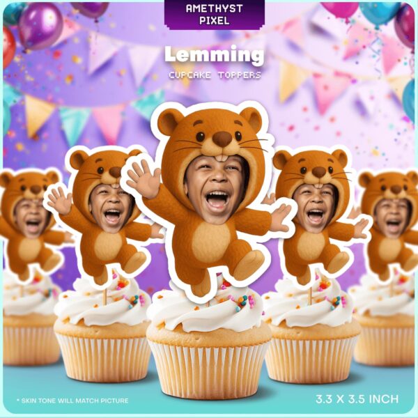 Custom Jumping Lemming Face Cupcake Toppers – Funny Printable Party Decor