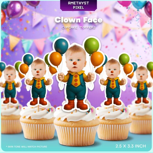 Custom Photo Baby Clown Theme Cupcake Toppers with Balloons
