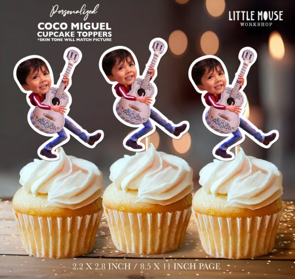 Personalized Coco Miguel Cupcake Toppers with Face – Custom Guitar Musician Birthday Decor