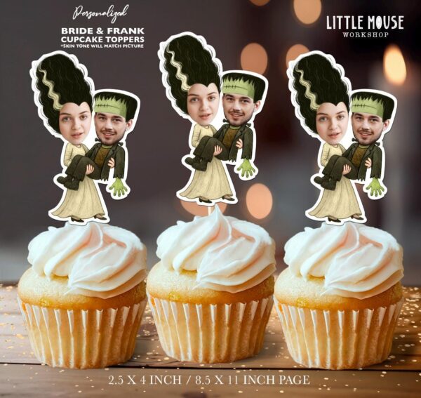 Custom Face Bride and Frankenstein Monster Couple Cupcake Toppers