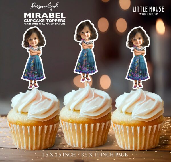 Custom Photo Face Mirabel Encanto Theme Cupcake Toppers for Kids Birthday