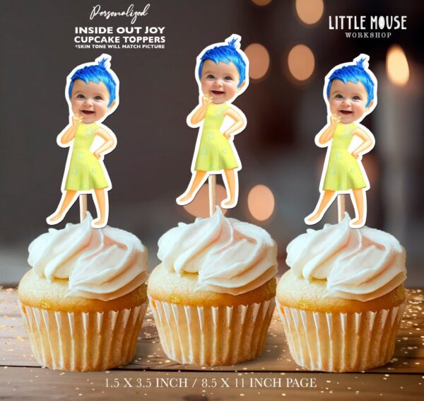 Custom Face Inside Out Joy Cupcake Toppers for Emotional Whirlwind Parties
