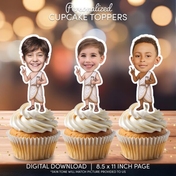 Custom Greek Toga Boy Photo Cupcake Toppers - Printable Ancient Mythology Decor