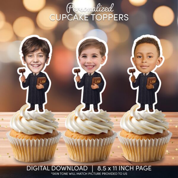Custom Face Judge Cupcake Toppers for Law School Graduation & Birthday Parties