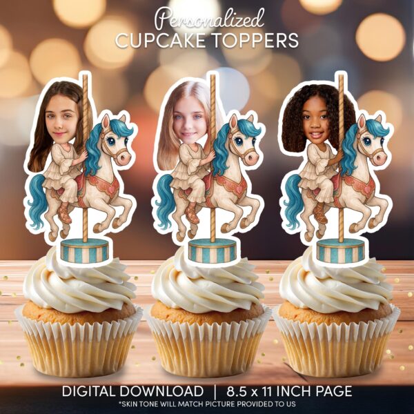 Custom Face Carousel Horse Cupcake Toppers - Printable Party Decor