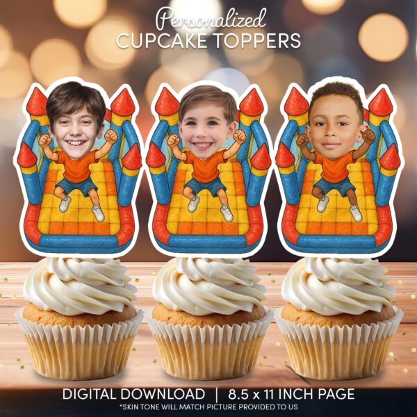 Personalized Bounce House Cupcake Toppers - Custom Face Jumping Castle Party Decor