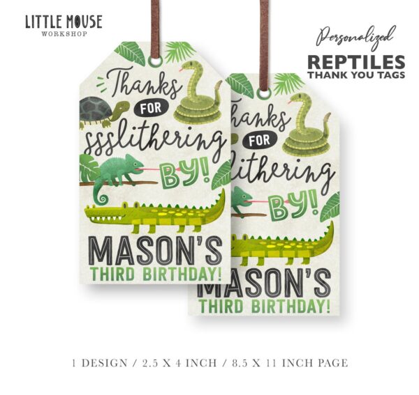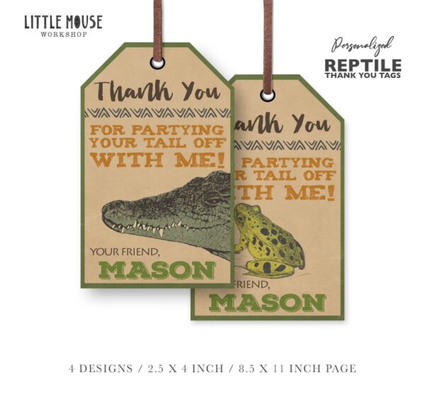 Personalized Reptile Birthday Favor Tags | Custom 'Party Your Tail Off' Printable Gift Labels