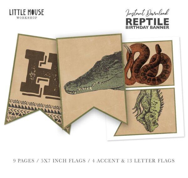 Printable Reptile Birthday Banner – Vintage Safari & Zoo Animal Party Bunting