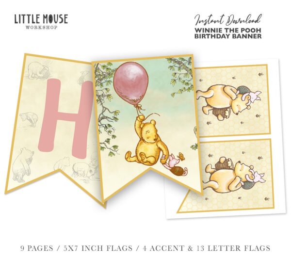 Printable Classic Winnie the Pooh Birthday Banner with Vintage Watercolor Illustrations