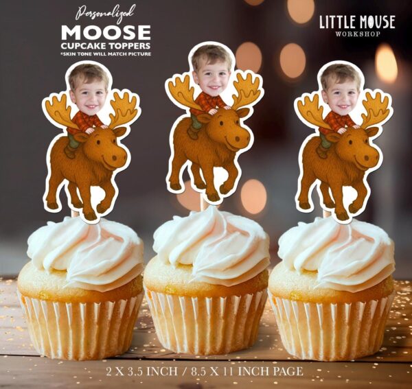 Personalized Photo Moose Riding Cupcake Toppers for Rustic Woodland Parties