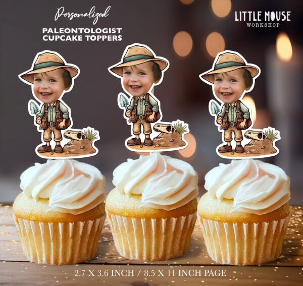 Custom Face Paleontologist Explorer Cupcake Toppers for Dinosaur Digs