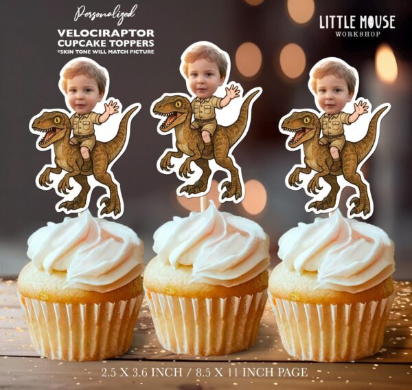 Custom Face Velociraptor Dinosaur Rider Cupcake Toppers